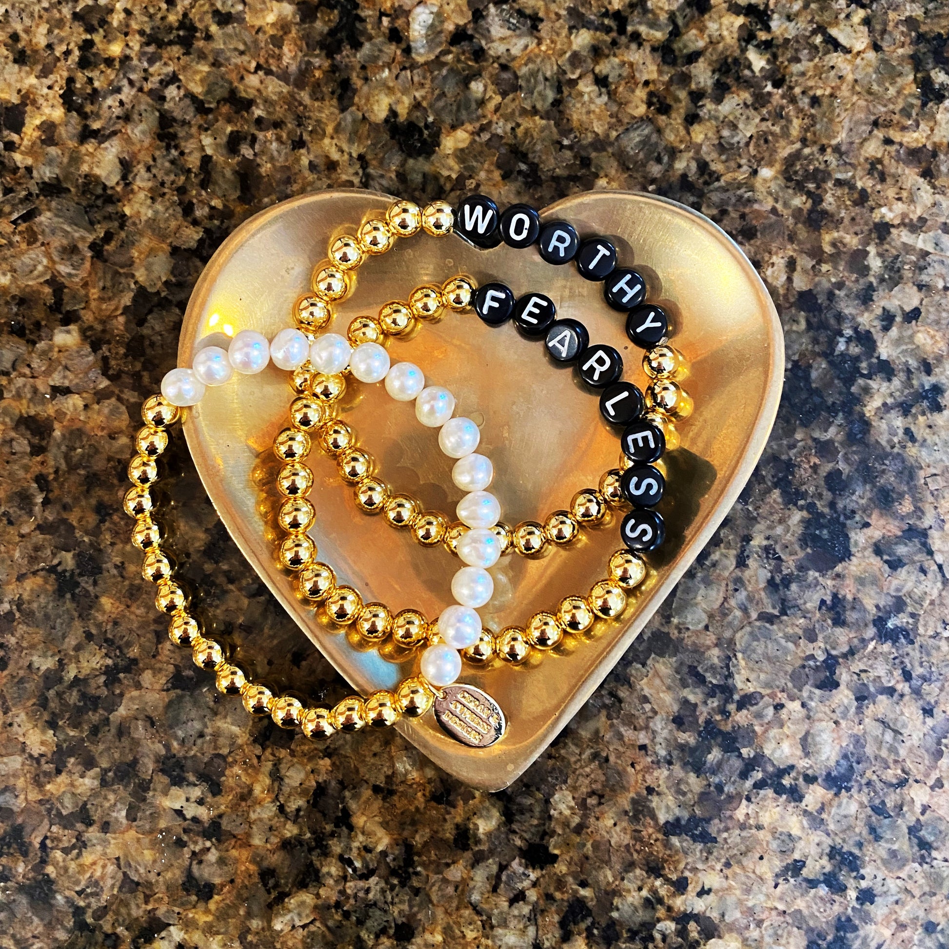 These pearl and gold bracelets are the perfect addition to any outfit! Learn more about Cedar & Cypress Designs on our Partnership Page.