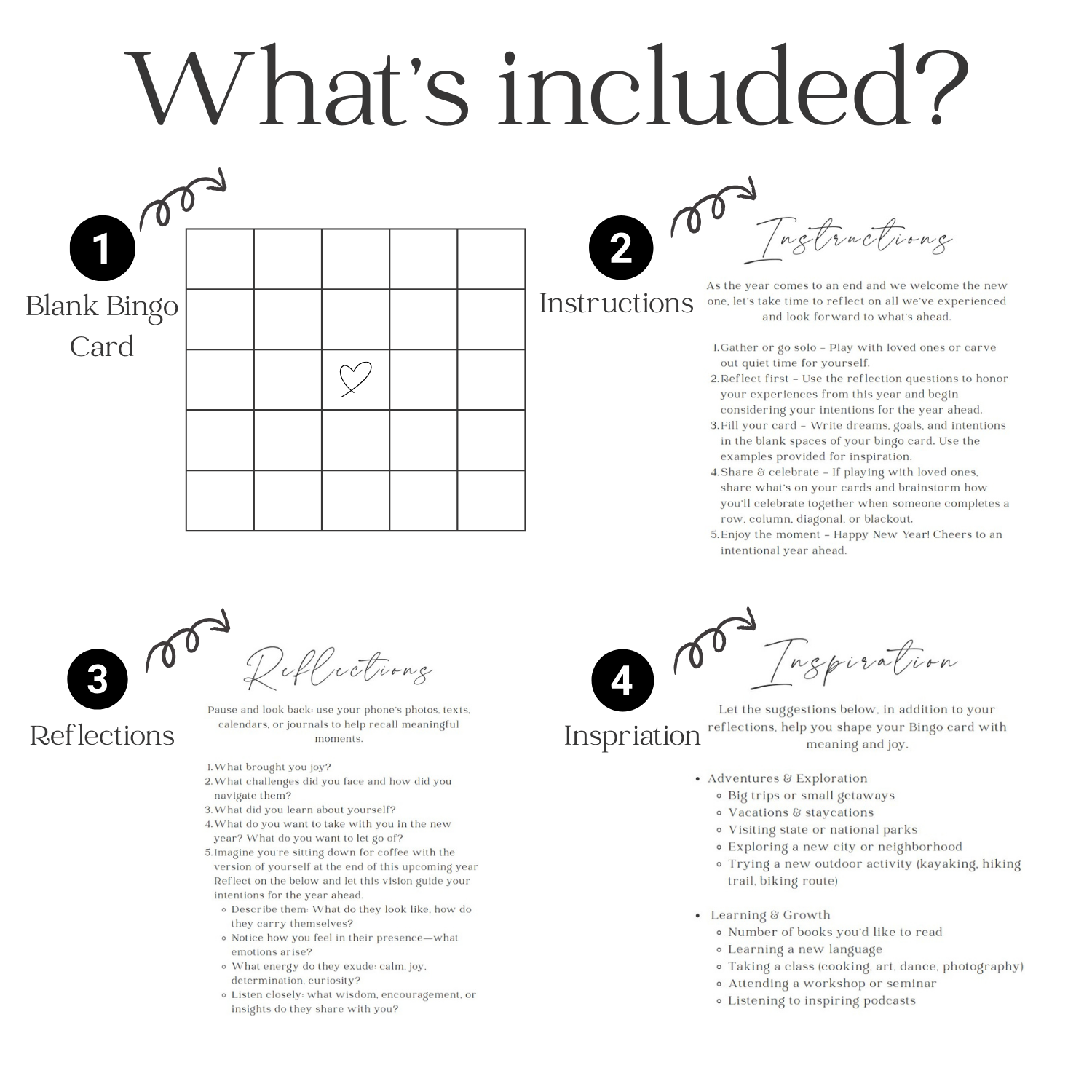 Perfect for New Year’s Eve gatherings, cozy solo journaling sessions, or intentional group celebrations, this bingo card brings playfulness to the practice of reflection and makes space for meaningful conversations.